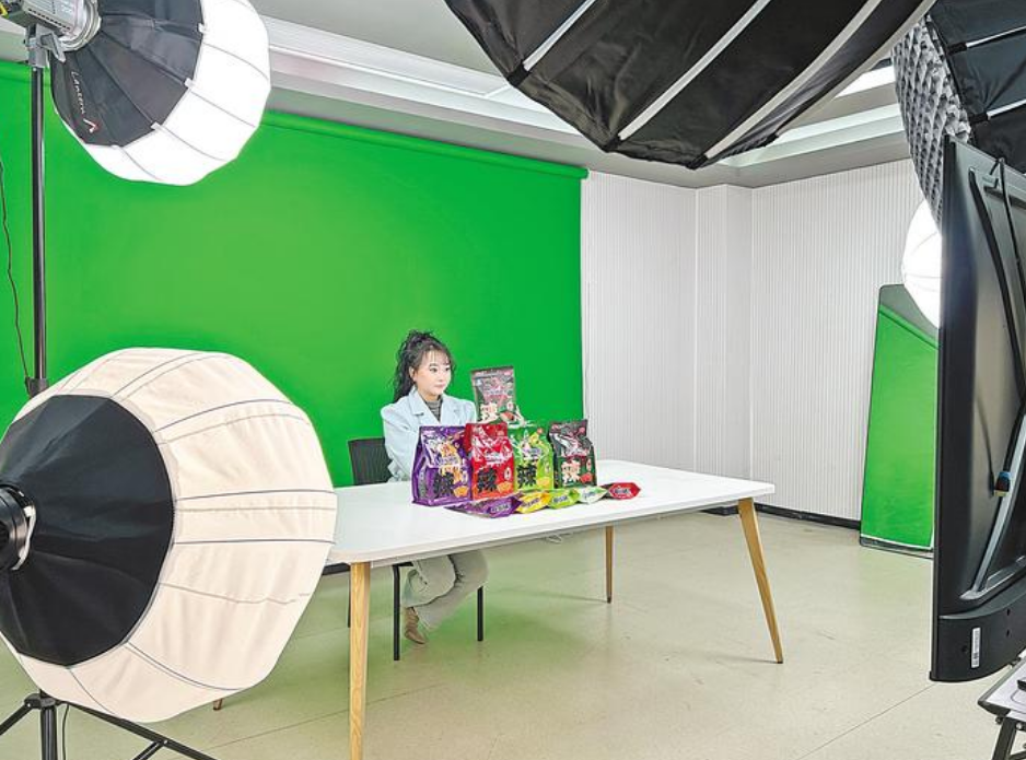 1月20日晚,主播“小零”在直播间向网友介绍新品锅巴。 (湖北日报全媒记者魏鹏通讯员王华摄)